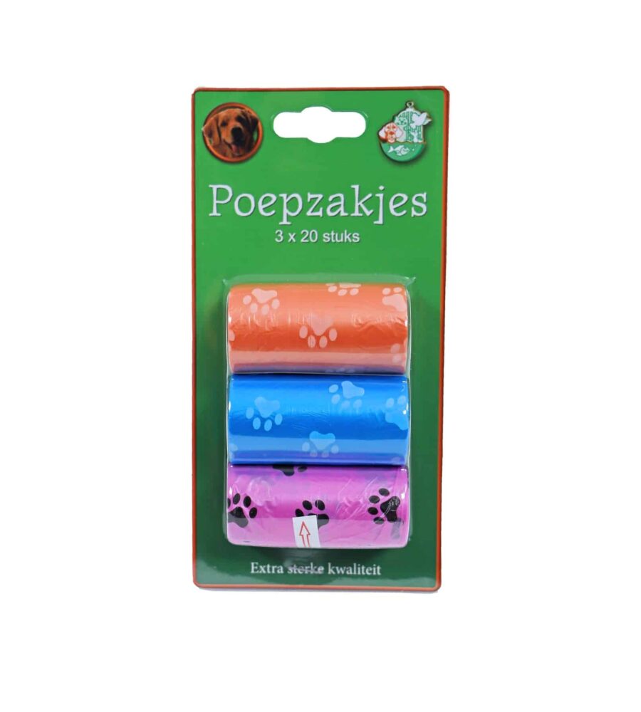 poepzakjes pootjes zijn 3 rollen met 20 sterke poepzakjes met pootjes print.