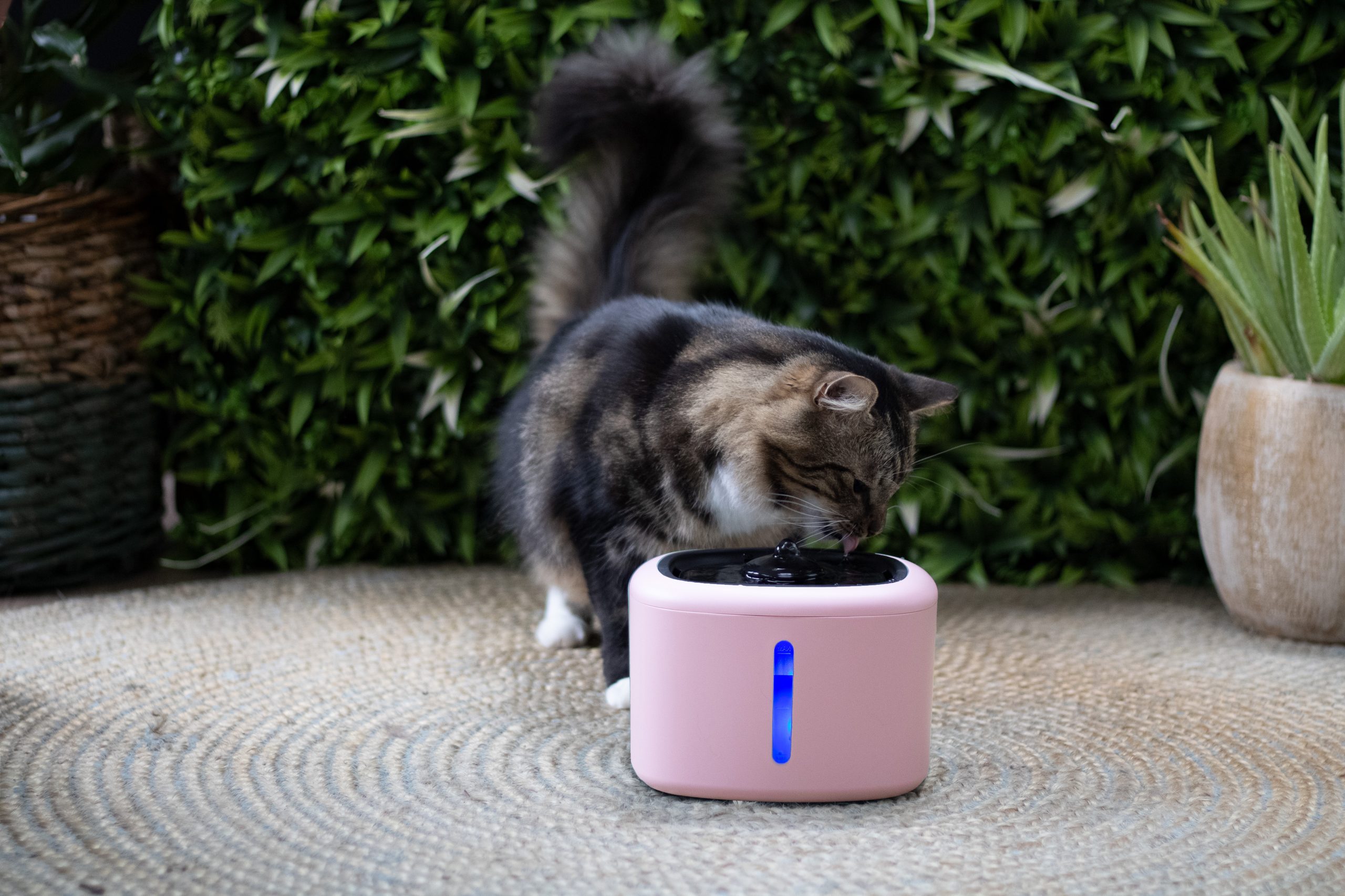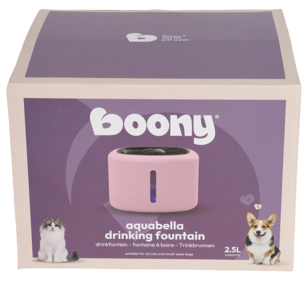 Drinkfontein Aquabella is een elektrische drinkfontein met filter en LED-verlichting, wat zorgt voor altijd fris drinkwater voor katten en kleine honden.