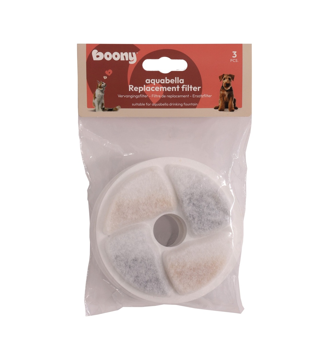 Dankzij deze filters die geschikt zijn voor de drinkfontein Aquabella van Boon, blijft het drinkwater altijd schoon en goed gefilterd.