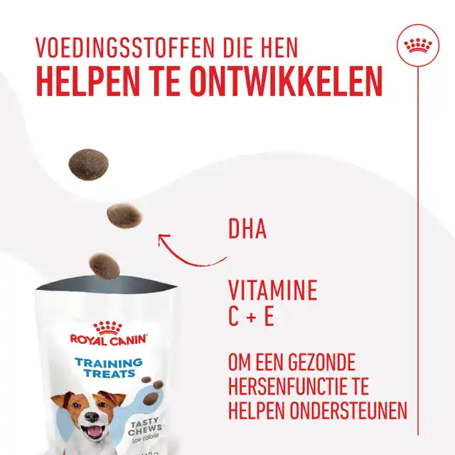 Wil je jouw hond op een verantwoorde manier belonen tijdens de training? ROYAL CANIN Training Treats zijn speciaal ontwikkeld voor honden ouder dan zes maanden en combineren smaak met wetenschappelijk onderbouwde voeding. Ideaal voor elke trainingsfase – van basiscommando’s tot geavanceerde trucs.