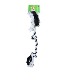 Laat jouw hond spelenderwijs zijn tanden poetsen met het Flostouw 3 Knoop Zwart Wit. Dit stevige speeltouw heeft een natuurlijke flossende werking die helpt bij het reinigen van tanden en tandvlees – zelfs tussen de tanden in.