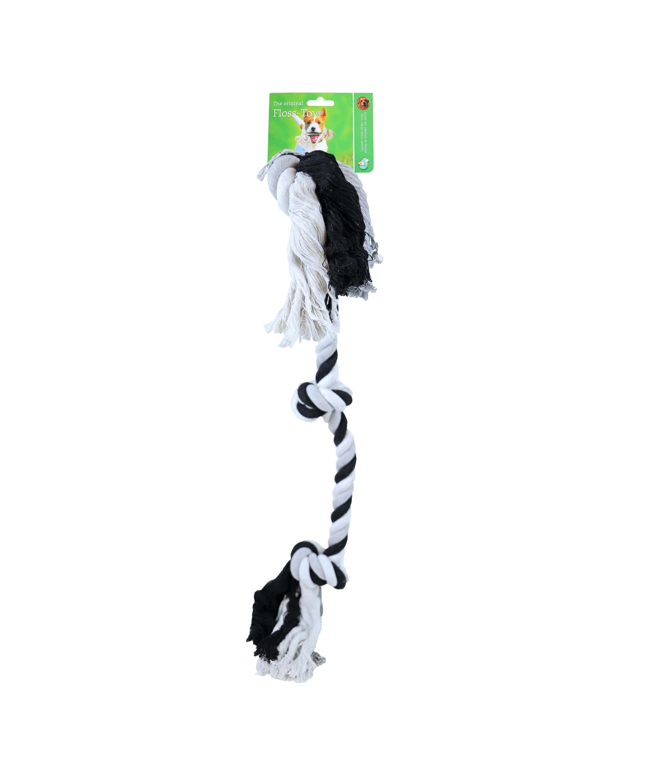 Flostouw 3 Knoop Zwart Wit – Speels én reinigend voor het gebit van jouw hond