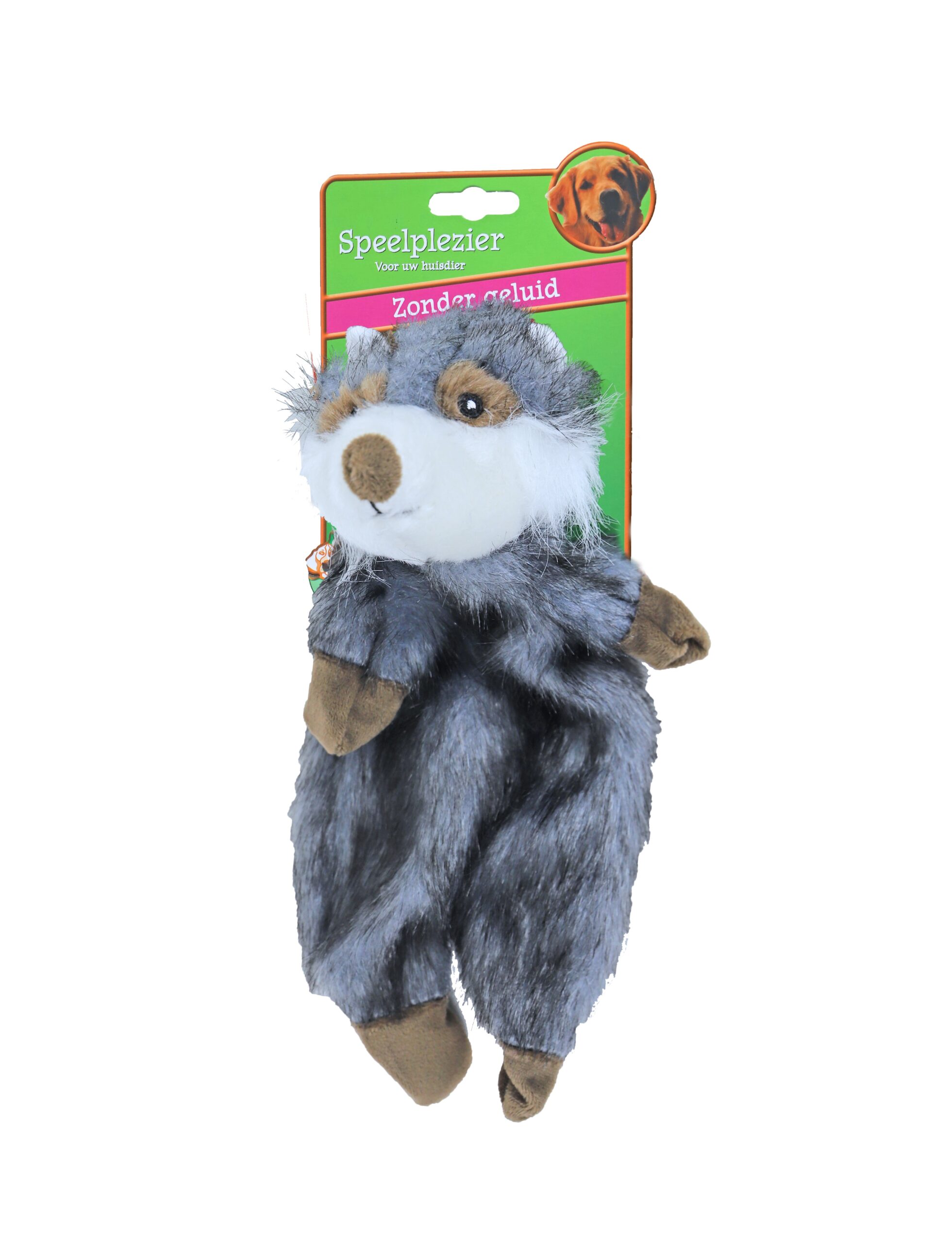 Laat jouw hond spelen zonder storende geluiden! Deze knuffel in de vorm van een wasbeer is 34 cm lang en gemaakt van zacht pluche materiaal. Ideaal voor honden die graag knuffelen én spelen, zonder het lawaai van een pieper.