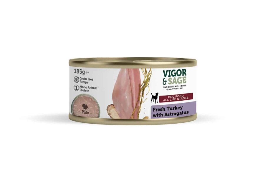 Omdat in Vigor and Sage Turkey with astragalus enkel kalkoen is verwerkt als vlees/eiwit bron, kan dit ook goed gegeven worden aan honden met een voedselallergie.