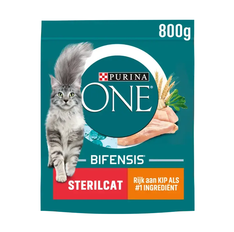 Purina ONE Sterilcat Rijk aan Kip en Tarwe ondersteunt gewicht, urinewegen en weerstand van gesteriliseerde of gecastreerde katten.