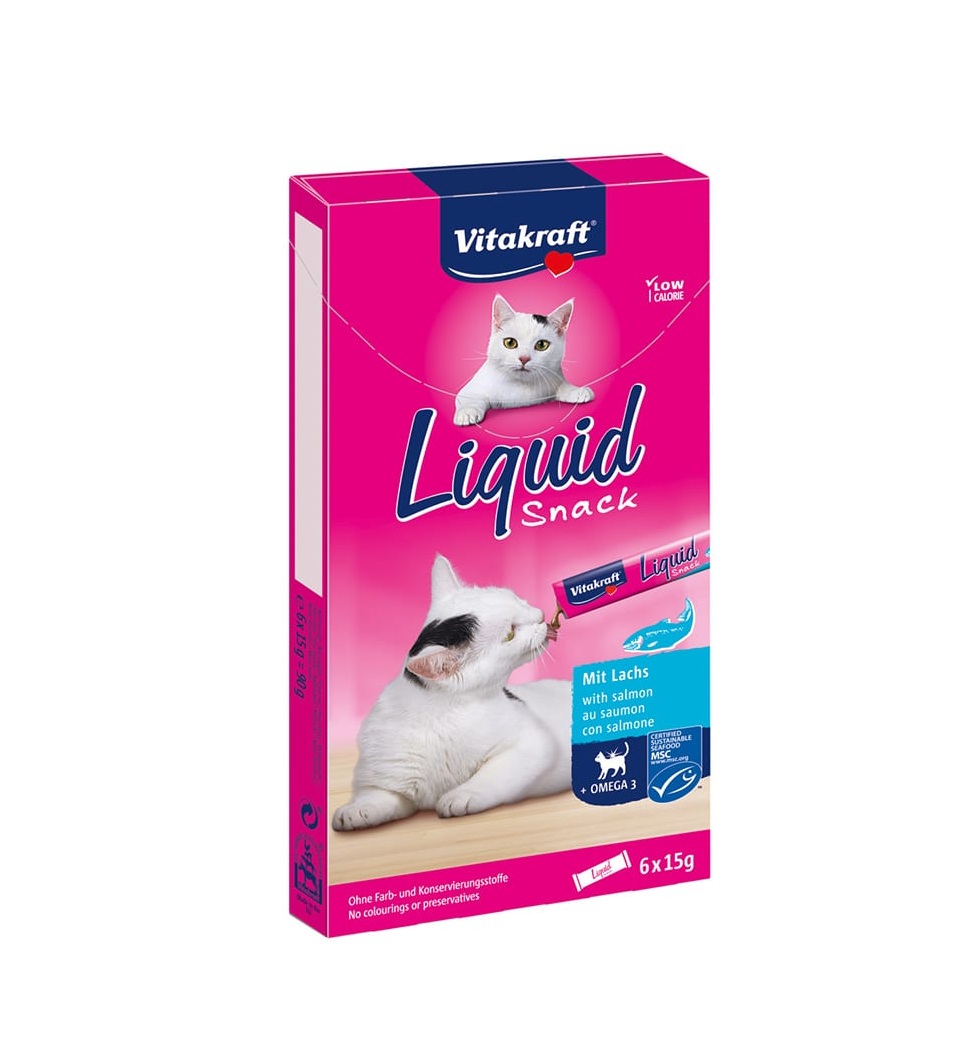 Verwen je kat met de onweerstaanbare Liquid Snack van Vitakraft. Deze zachte snack met zalm is niet alleen een feestje voor de smaakpapillen, maar ondersteunt ook huid en vacht dankzij de toegevoegde omega-3 vetzuren. En dat alles met een laag caloriegehalte en zonder onnodige toevoegingen.