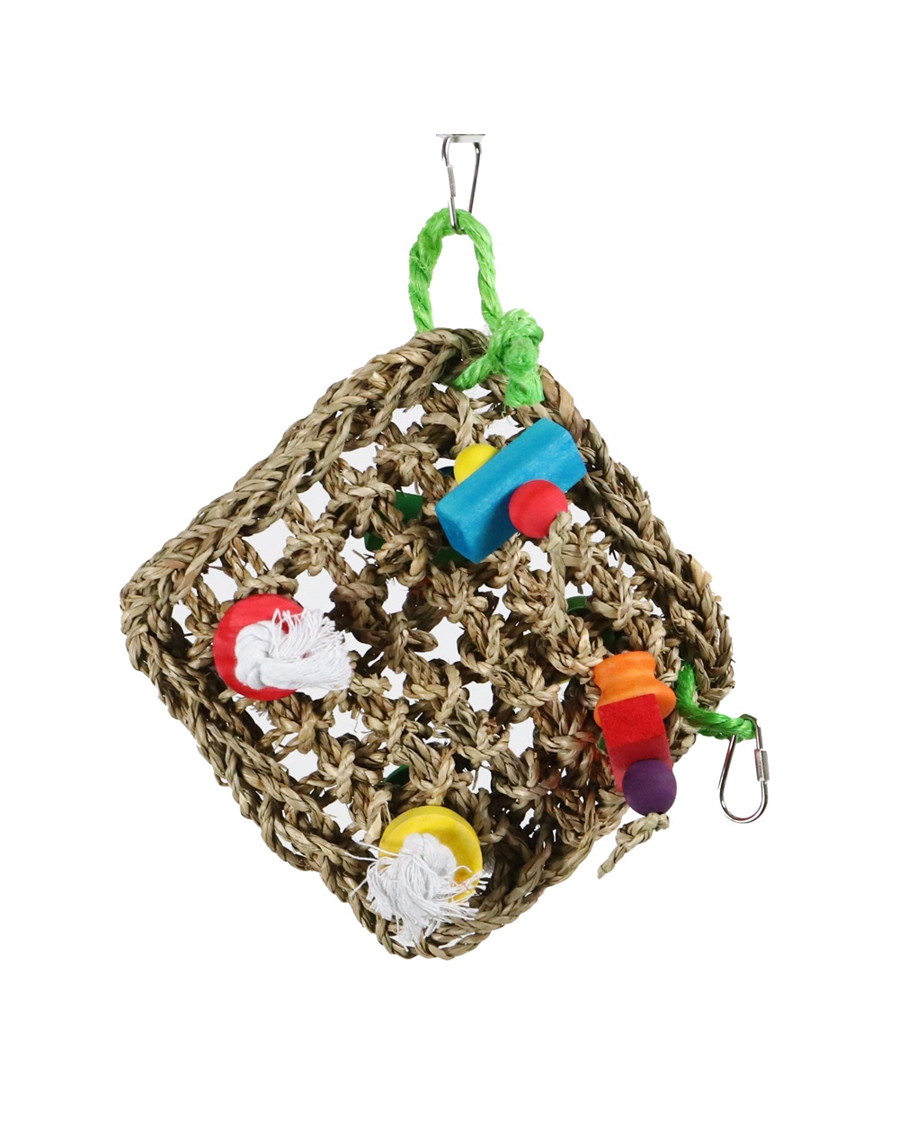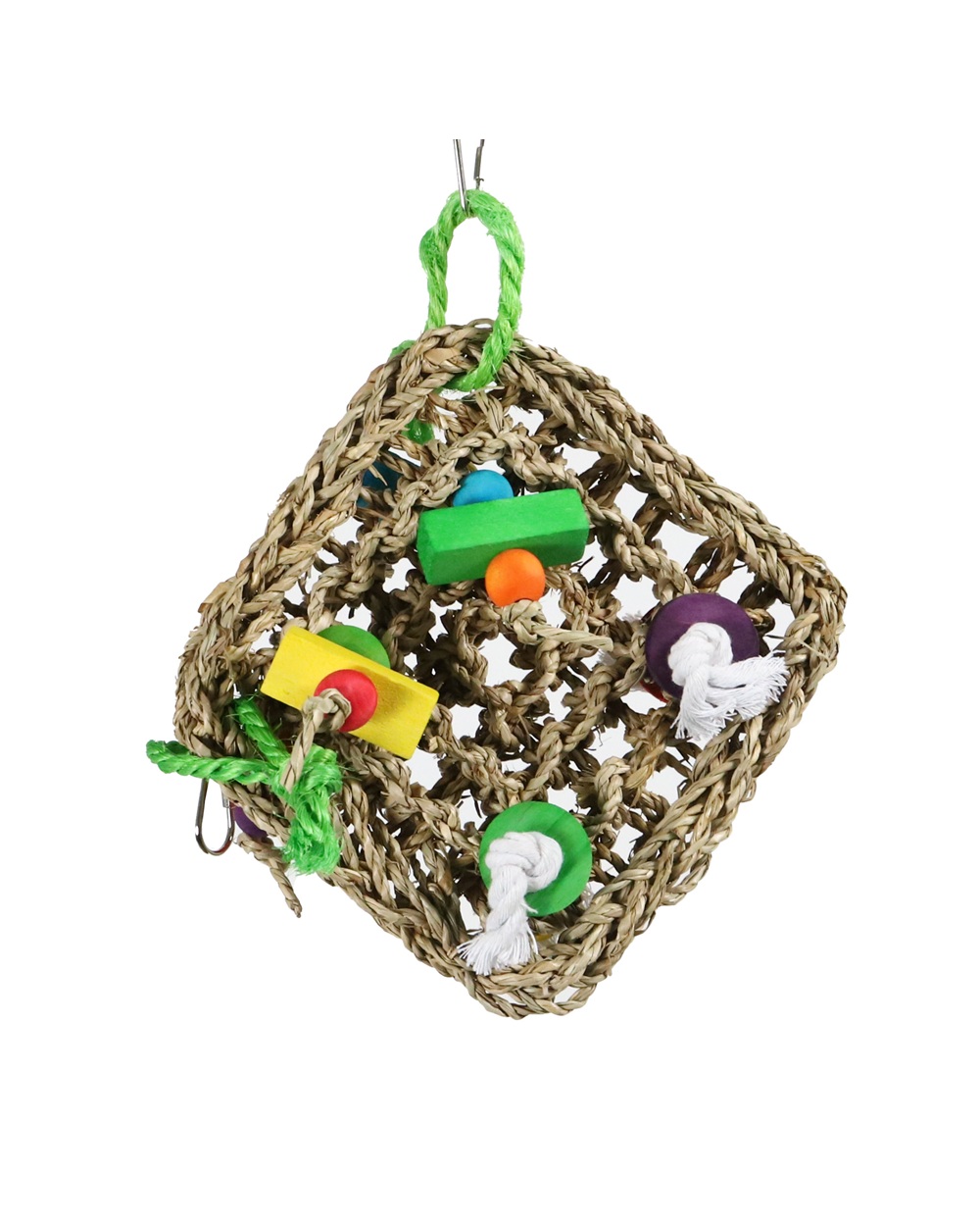 Stimuleer het natuurlijke klim- en speelgedrag van jouw vogel met deze veelzijdige klimmat van gevlochten zeegras. De toevoeging van houten blokjes, kralen en touw maakt het geheel extra aantrekkelijk en uitdagend. Ideaal om verveling tegen te gaan en jouw vogel actief en gelukkig te houden.