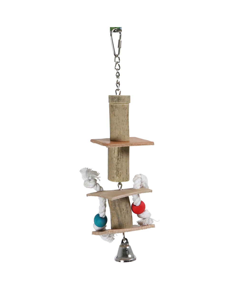 Vogelspeelgoed slinger hout + leder + touw + bel 32cm – Voor actieve vogels die van variatie houden